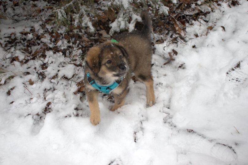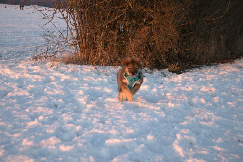 Und dann gibts natürlich noch die Marly, meine neue beste Freundin. Wir haben uns gleich gut schnüffeln können und das Beste: Marlys und mein Frauchen scheinen sich irgendwie schon zu kennen – von früher wahrscheinlich. Ich würde gerne wissen, wie mein Frauchen so war als kleiner Welpe. Auf jedenfalls gehen wir seitdem an den Wochenenden immer mal wieder Marly besuchen und wir dürfen ganz ohne Hundelehrerbelehrungen zusammen über die Felder flitzen. Leider sind meine Beinchen noch nicht so lange und ich bin immer etwas hinterher. Aber irgendwann, werde ich genau so schnell wie Marly sein… ganz bestimmt. Achja Frauchen meint ich müsse noch ganz oft in diese Welpenschule damit ich auch irgendwann mal so gut höre wie die älteren Hunde. Ich weis gar nicht was sie damit meint, ich war doch immer voll aufmerksam … äh was hast du gesagt Frauchen???