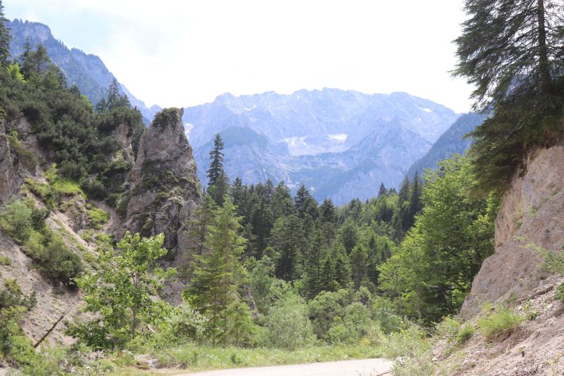 Die Partnachklamm eignet sich hervorragend für einen kurzen Ausflug oder als Ausgangspunkt für weitere Wanderungen entlang des Reintals. Wer nach der Klamm wieder zurück nach Garmisch-Patenkirchen möchte, kann entweder neben der Klamm über die „Eiserne Brücke“ zurück laufen, oder einen Umweg über die Kaiserschmarrn Alm oder die Partnachalm machen. Der Weg hoch zur Partnachalm vom Ende der Partnachklamm aus ist sehr steil und anstrengend. Der Weg von der Alm zurück ins Tal ist vor allem für die Knie sehr belastend, darum empfehlen wir euch hier auf jeden fall Wanderstöcke mit zu nehmen. Auf dem Weg befinden sich zum glück mehrere Ruheplätze im Wald, mit einem wunderschönen Blick in die Natur und über das Reintal. (Gesamtdauer ca. 3 Stunden inkl. Pause).