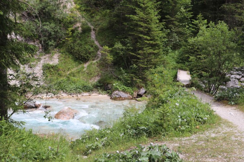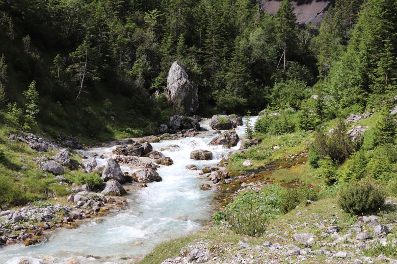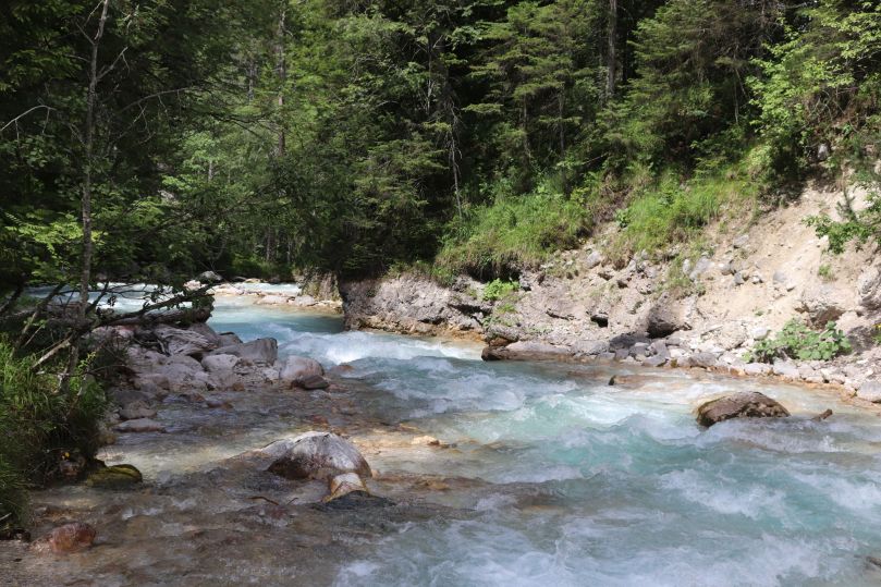 Nicht weit von der Reintalangerhütte entfernt, entspringt die Partnach aus dem Gestein der Berge. Wer möchte kann sich direkt in der Quelle erfrischen, dabei sollte man aber gut aufpassen nicht zu weit hinein zu gehen. Durch den Wasserfall direkt an der Quelle, entwickelt das Wasser eine enorme Strömung und reist alles mit, was in ihren Zug gerät.