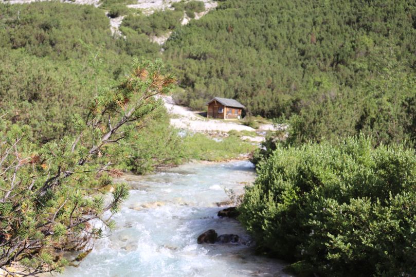 Nach der Klamm wird der reisende Fluss wieder zu einem eher stillen Flüsschen, der fast schön träge dahinfliest. Nach der Klamm folgt ihr einfach der Beschilderung oder den anderen Wanderern in Richtung Reintal, Reintalangerhütte, Zugspitze. Mit nur leichter Steigung, führt der Weg meinst direkt an der Partnach entlang und bietet den Wanderern meist ein schönen Blick auf den Fluss. Die erste Rastmöglichkeit für alle, die ihr Essen und ihre Getränke nicht selber den Berg hochtragen wollen, bietet die Bockhütte auf ca. 1052 m, welche man nach ca. 1 St. Aufstieg (nach der Partnachklamm) erreicht. Leider gibt es in der kleinen Hütte keine Übernachtungsmöglichkeit und es bleibt entweder der Weg hinauf zur Reintalangerhütte oder wieder hinunter nach Garmisch-Partenkirchen. Übernachten in freier Natur ist hier verboten! In den Wintermonaten ist die Bockhütte geschlossen.