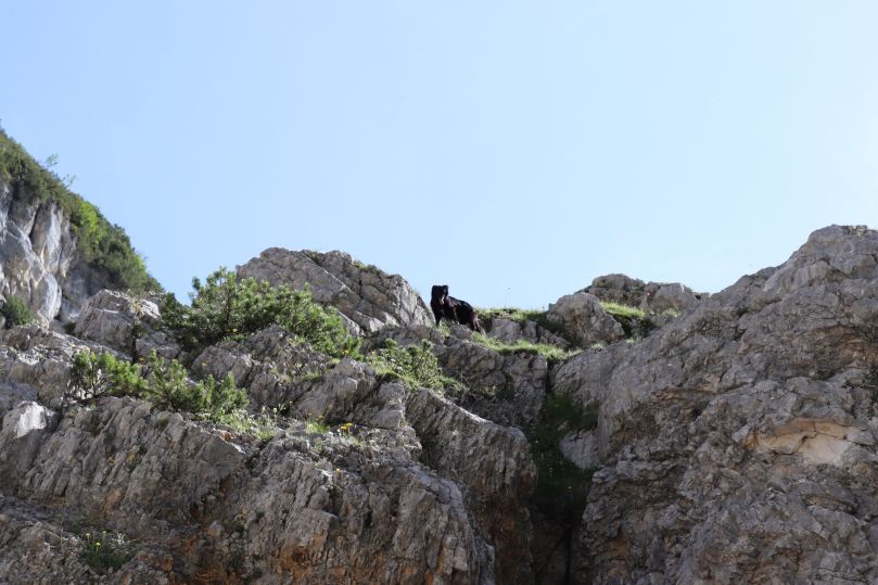 Es scheint fast so, als wacht der Hund des Schäfers darüber, dass keiner seiner Artgenossen weiter als bis zur Quelle der Partnach geht.