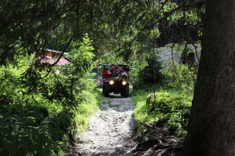 Mit dem Quad werden frische Lebensmittel auf dir Reintalangerhütte gefahren. Dabei ist der Weg nicht immer so gerade wie hier.